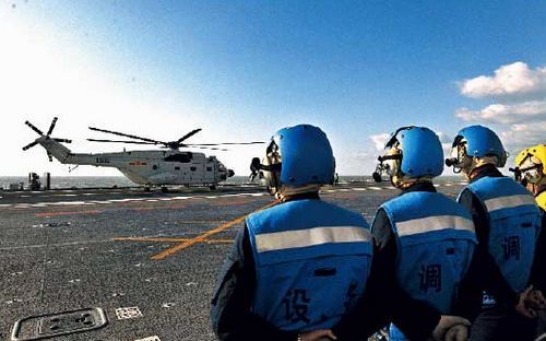該團艦載直升機降落遼寧艦(解放軍畫報 攝影并撰文/胡寶良特約記者王松岐記者宋雯)