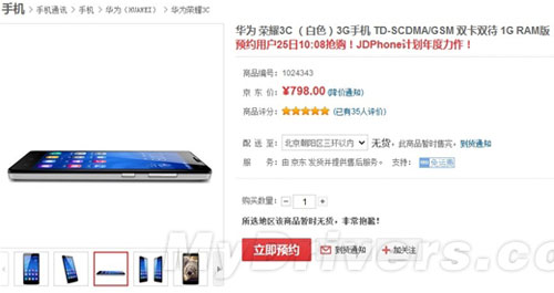 之前預(yù)約的用戶今天上午10點08可以去京東或者華為商城進行搶購該機,需要注意的是,首批預(yù)售的榮耀3C只有1GB RAM版的,其售價為798元。