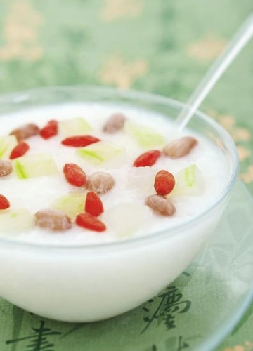 原料:米100克、花生75克、枸杞30克、冬瓜75克。調料:冰糖75克。做法:1.花生米清水浸泡1小時。米清洗后用純凈水浸泡30分鐘。冬瓜去皮切成丁,刨下的外皮留用。2.鍋中放水和冬瓜皮,煮至沸騰后 ...