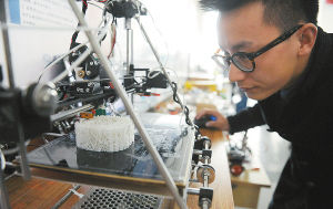 “現在很流行一個詞叫‘創客’,就是自己設計制作,把創意變為現實。因為作品受眾面小,不可能大批量生產。這種3D打印機能滿足小批量、個性化生產的需要。”現場一位同學介紹說,攢這么一臺打印機只需要3000多元,但打印時間真的很長,“比如正在打的這朵玫瑰花,大概需要7個小時。”他的介紹讓記者驚呆了。