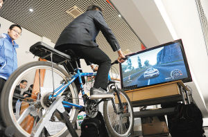 本報訊 時下體感游戲最盛行,如果像騎單車一樣駕駛“極品飛車”,在電玩中達到健身的目的,玩家一定大呼過癮。昨日,西安電子科技大學展出兩千余件大學生科技競賽作品,很多創意令人耳目一新。