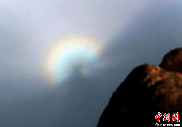 11月13日,黃山風景區始信峰“佛光”奇觀。當日,安徽黃山風景區雨后放晴,云海飄蕩。黃山風景區始信峰出現今年入冬以來最為持久的“佛光”奇觀,令人嘆為觀止。中新社發方也廣德攝圖片來源:CNSPHOTO