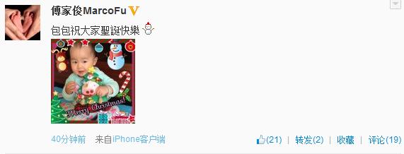 鳳凰體育訊 北京時(shí)間11月25日,傅家俊在微博上發(fā)布了自己一歲女兒的圣誕照片,并配文字:包包助大家圣誕快樂(lè)。