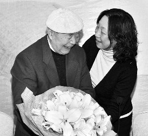 昨天,《錢谷融文集》出版座談會(huì)在上海作協(xié)召開。圖為作家陳丹燕(右)向錢先生(左)獻(xiàn)花。